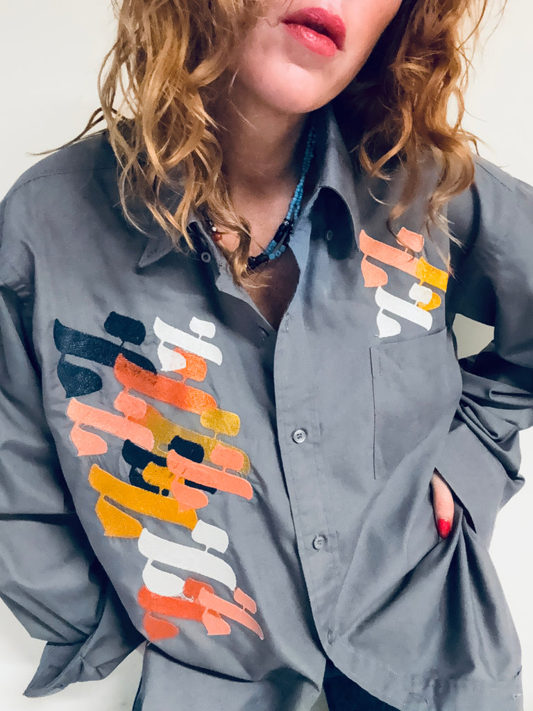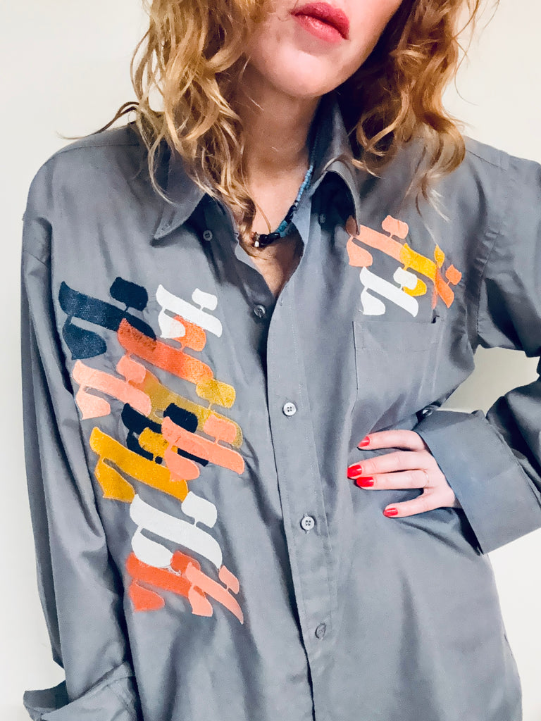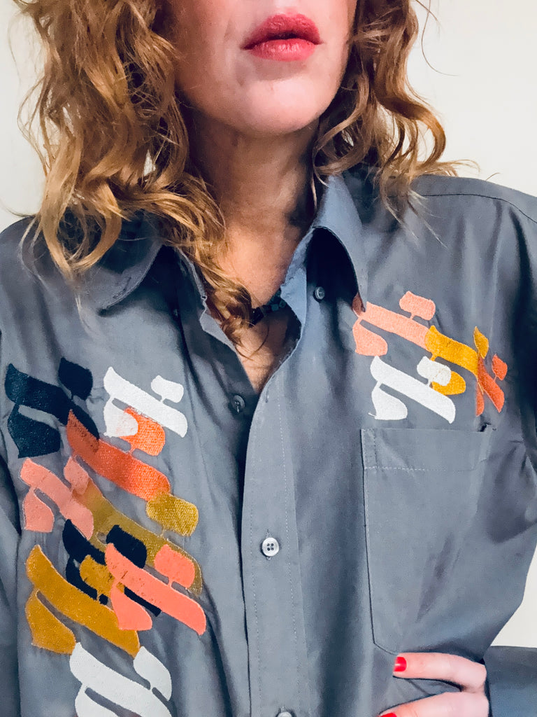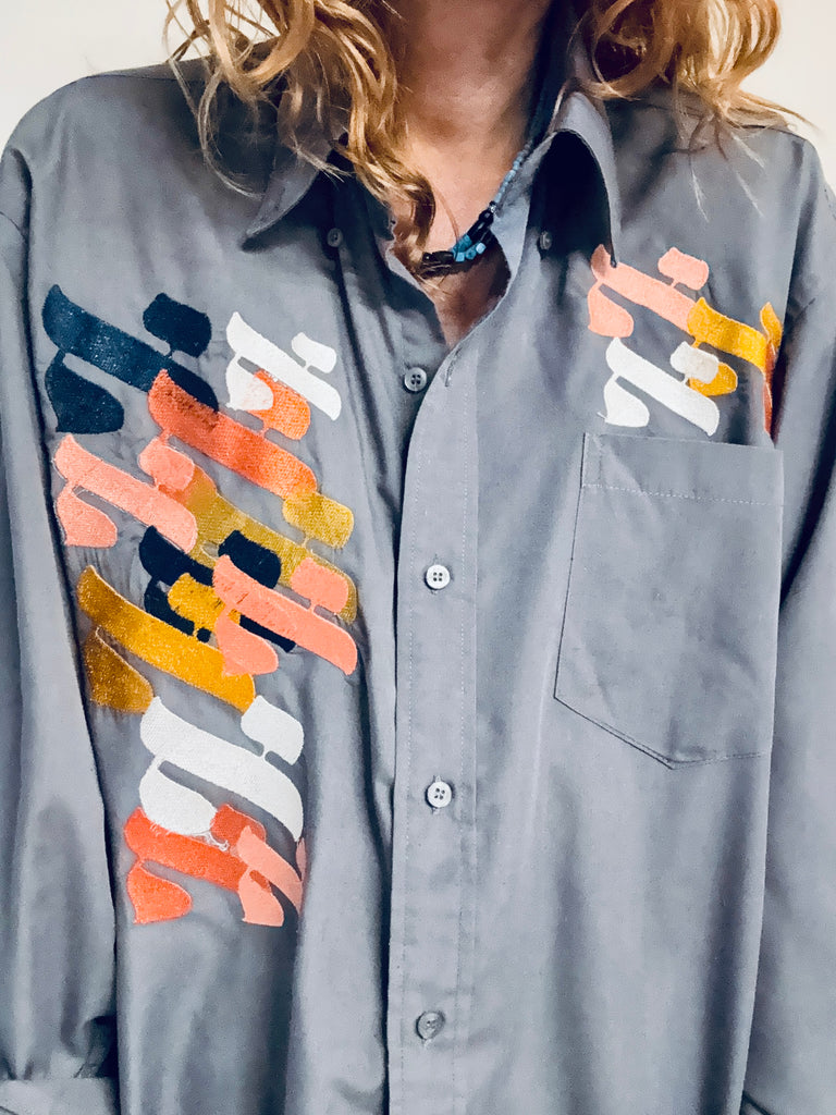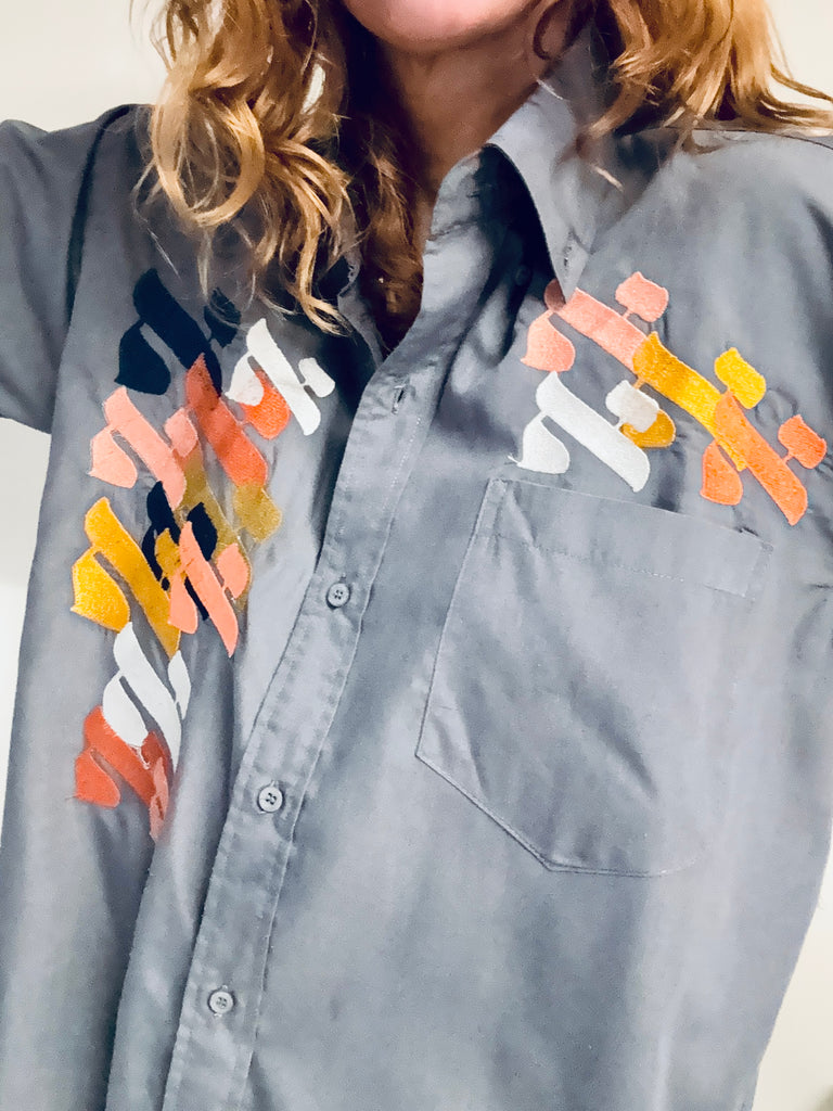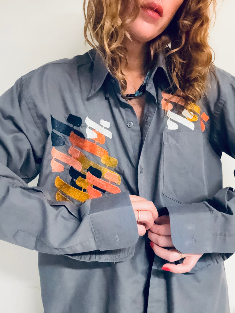 Chemise grise anthracite pour homme loose Vintage brodée pièce unique