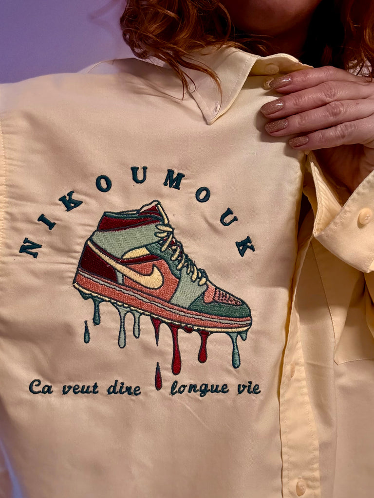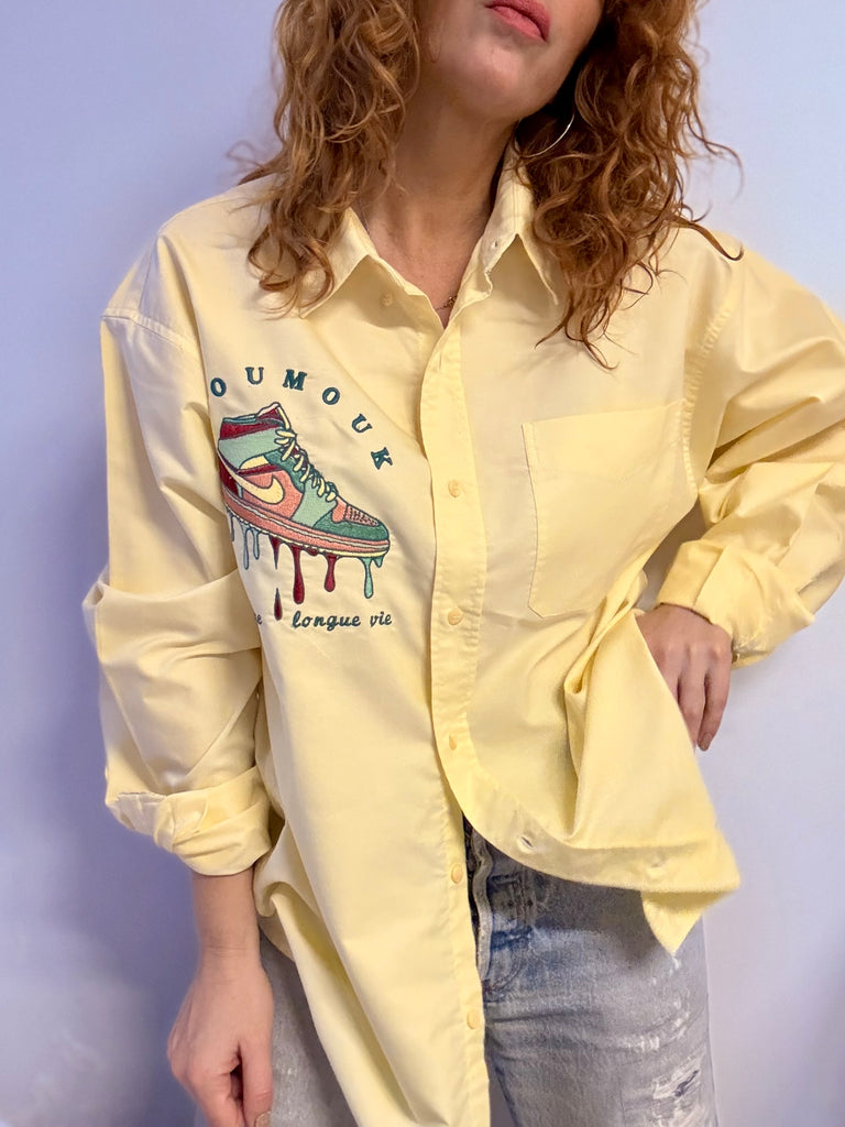 Chelsie d’homme jaune pale , très loose , plutôt épaisse , pièce brodée unique