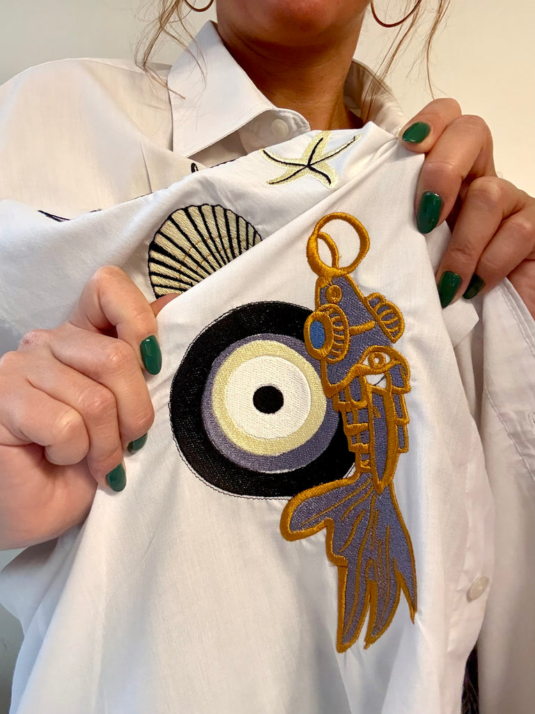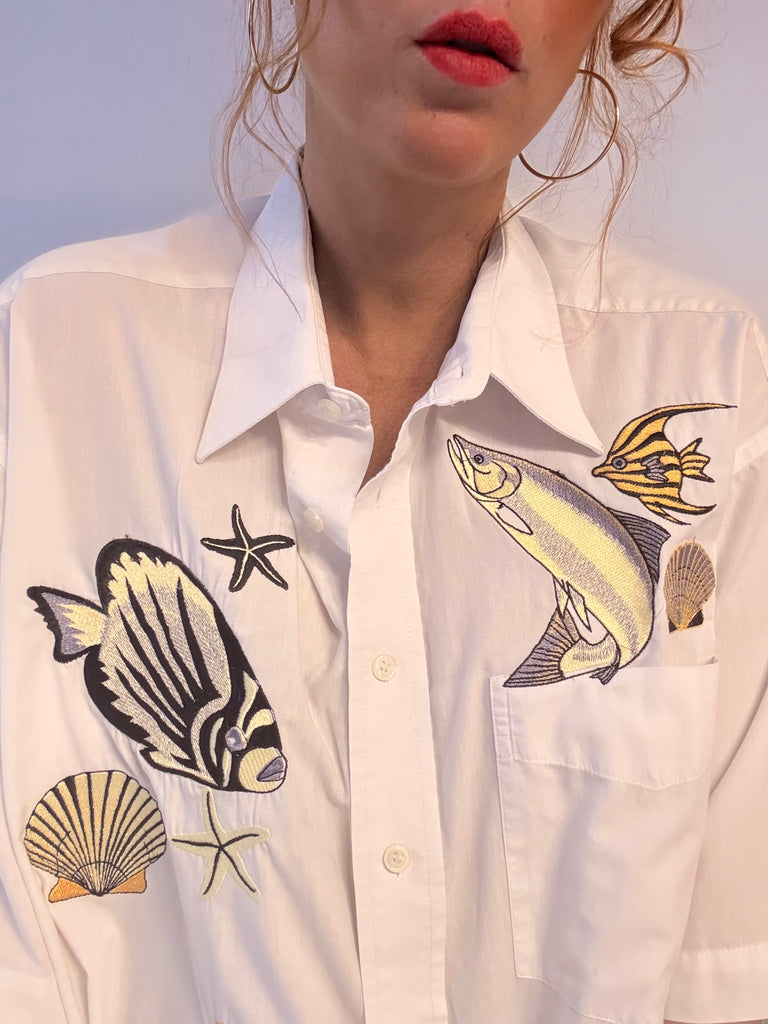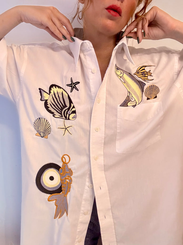 Chemisette blanche, Superloose , Toute brodée, pièce, unique, magnifique !