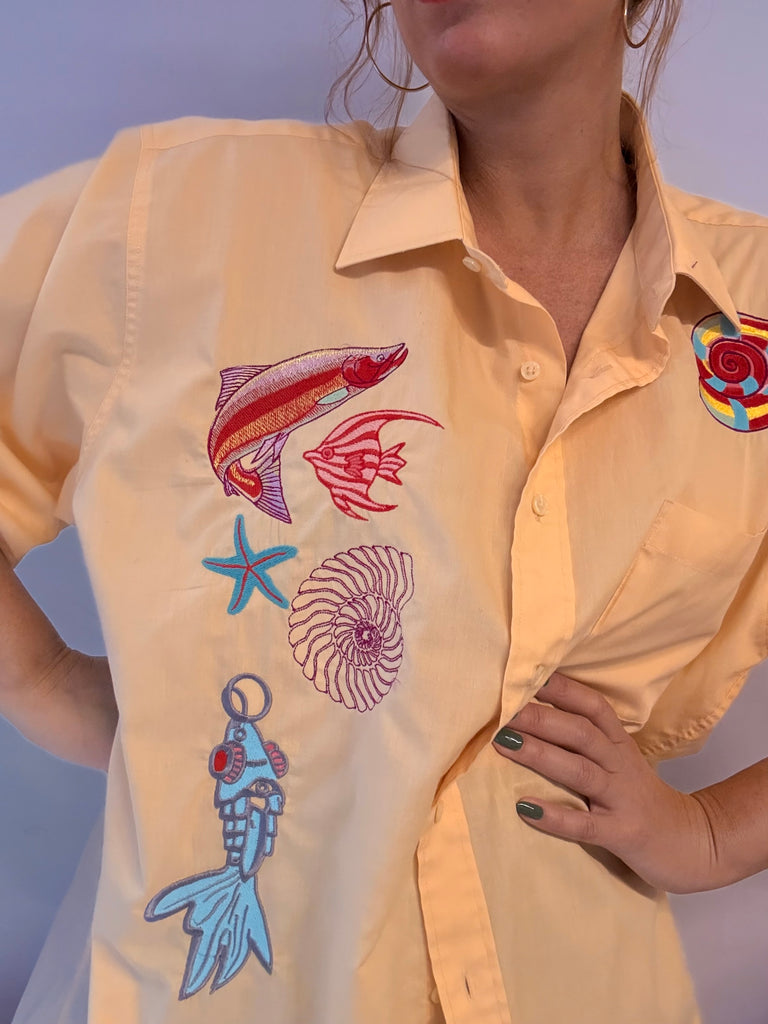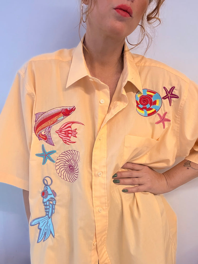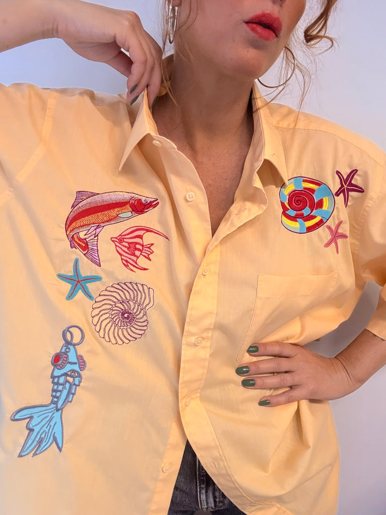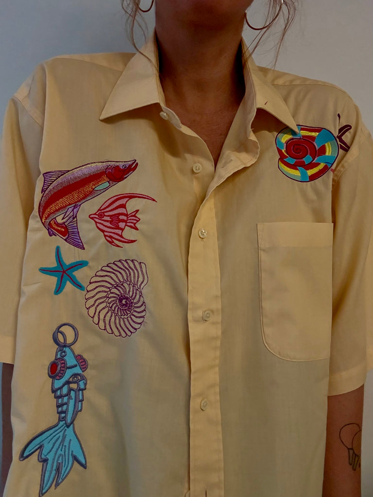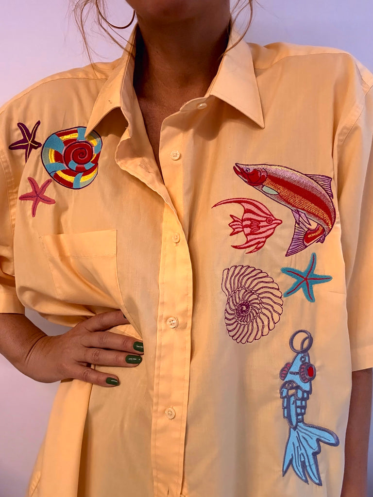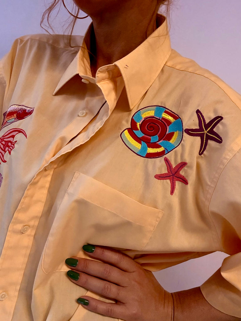 Chemisette d’homme, super, lose, tout brodé, vintage, pièce, unique, intemporelle et belle